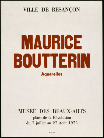 Présentation du fonds La sous-série 1Fi est constituée d'affiches versées en avril 2004 par le Musée des Beaux-arts et d'Archéologie de Besançon. Ces affiches, qui couvrent une période allant de 1946 à 2003, illustrent pour la plupart les expositions mais aussi les concerts présentés au Musée des Beaux-arts et d'Archéologie et au Palais Granvelle. Chacune d'entre elles a été conservée dans la mesure du possible en quatre exemplaires. Chaque notice présente dans l'ordre : le titre de l'exposition, le sous-titre ou informations complémentaires, la description physique du document, et le cas échéant, le renvoi à la cote du dossier d'organisation de l'exposition, lorsque celui est également conservé aux Archives Municipales (« Lié à »). Un plan de classement permettra de faire des recherches par thèmes. Ces documents, librement consultables, sont conservés dans un dépôt extérieur. C'est pourquoi leur communication en salle de lecture est soumise à un délai de 24 heures minimum.