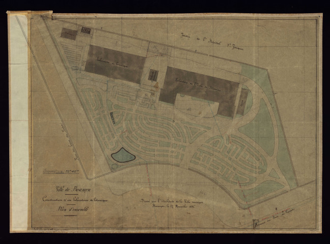 Les conduites d'eau alimentant le laboratoire sont dessinées au crayon bleu.