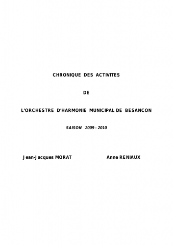 Chroniques des activités de l'Orchestre d'harmonie municipal entre 1994 et 2020 rédigées par J.J Morat, A. Reniaux, E. Ramseyer, S. Bénier et J.J. Reynes. ; photographies.