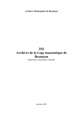 20Z Archives et bibliothèques de la Loge maçonnique de Besançon