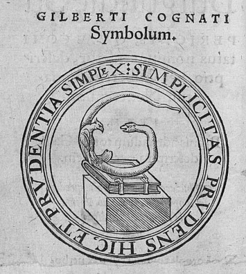 Emblème de Gilbert Cousin avec sa devise, dans BM 267324 (Brevis ac dilucida Burgundiae superioris quae Comitatus nomine censetur, descriptio..., 1552)