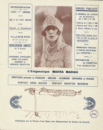2R268 : prospectus pour le spectacle de "l’énigmatique Mahra Madiah" (s.d.)