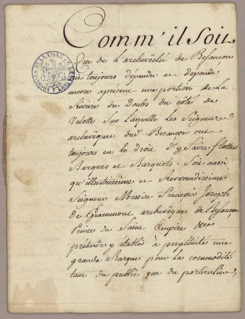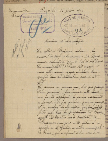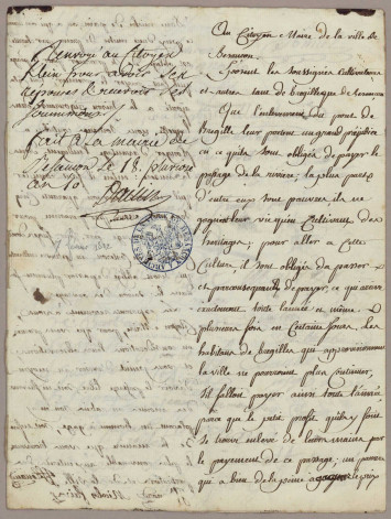 Plaintes des cultivateurs de Bregille, « la plupart d’entre eux sont pauvres, il ne gagnent leur vie qu’en cultivant » et sont « obligés de passer et par conséquent de payer […] toute l’année et même plusieurs fois par jour […] pour approvisionn[er] la ville », 18 pluviôse an X, Archives municipales, 3O26