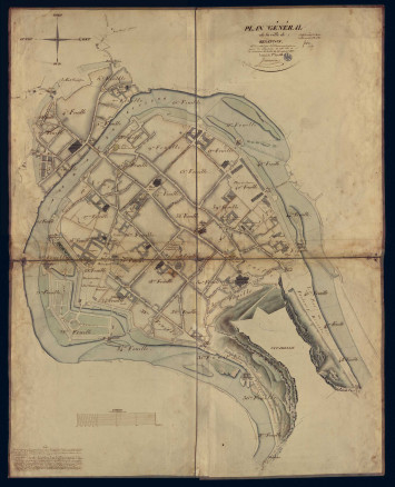 AMB 1P1 : Plan figuré de la ville de Besançon indiquant les différentes cures et succursales (paroisses), fin XVIIIe-début XIXe siècle